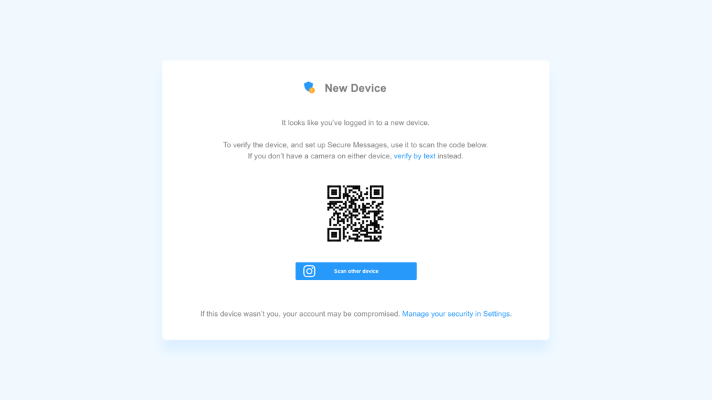 Gone are the days of every person you talk to having to independently verify your new device upgrade. Like cross-signing, you can verify a device by scanning a QR code or comparing a short text string.