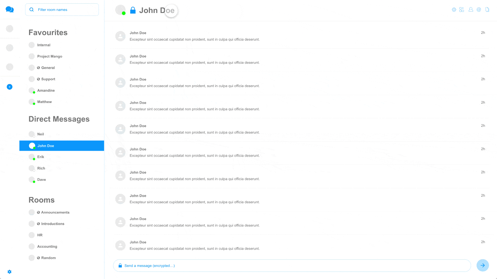 Let's dive in to some of the fundamental concepts we'll be putting forward to deliver a default end-to-end encryption experience that makes sense for most modern users. In this post we'll look at an overview of work-in-progress wireframes, in the spirit of designing in the open and gathering feedback from the wider Matrix community. Please note that these don't represent the actual interface design.