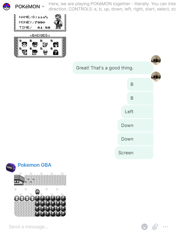 If you're unfamiliar with last week's post, the GameBoy emulator is a program that emulates games and then interacts with you on Matrix. You can send commands and the emulator will show you what happened in the game.