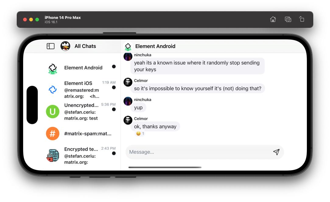 • Work on Element X is making great progress, we’re even looking at how to improve the iPad and desktop view for users on larger screens.